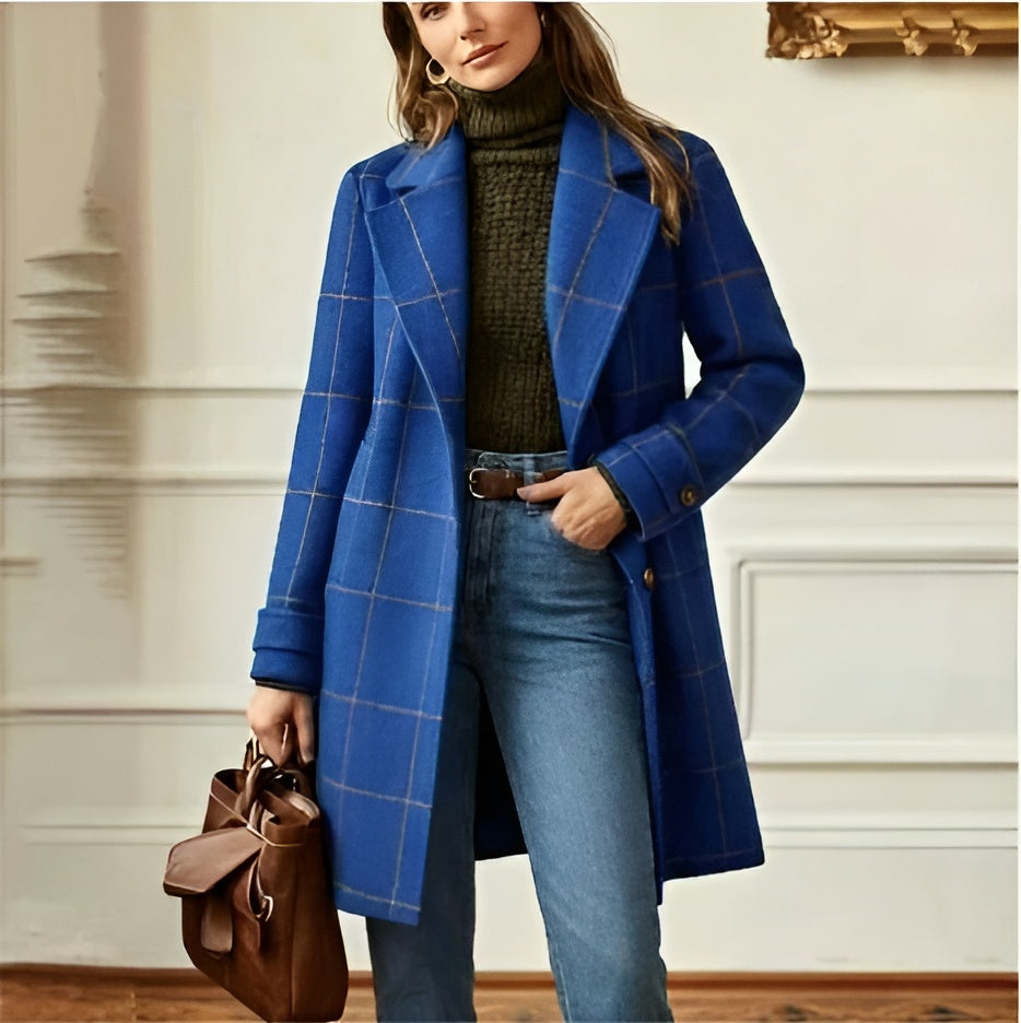 Classic tailoring with a modern edge. The Quinlan Wool Check Coat is made for women who prefer timeless pieces over fast trends. The vintage-inspired check, sharp lapel collar and structured shape give this coat real presence without trying too hard. It’s the kind of outerwear you reach for year after year — polished, warm and easy to style.